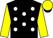 Breeder: Colours: Black, white spots, yellow sleeves and cap, black peak |
